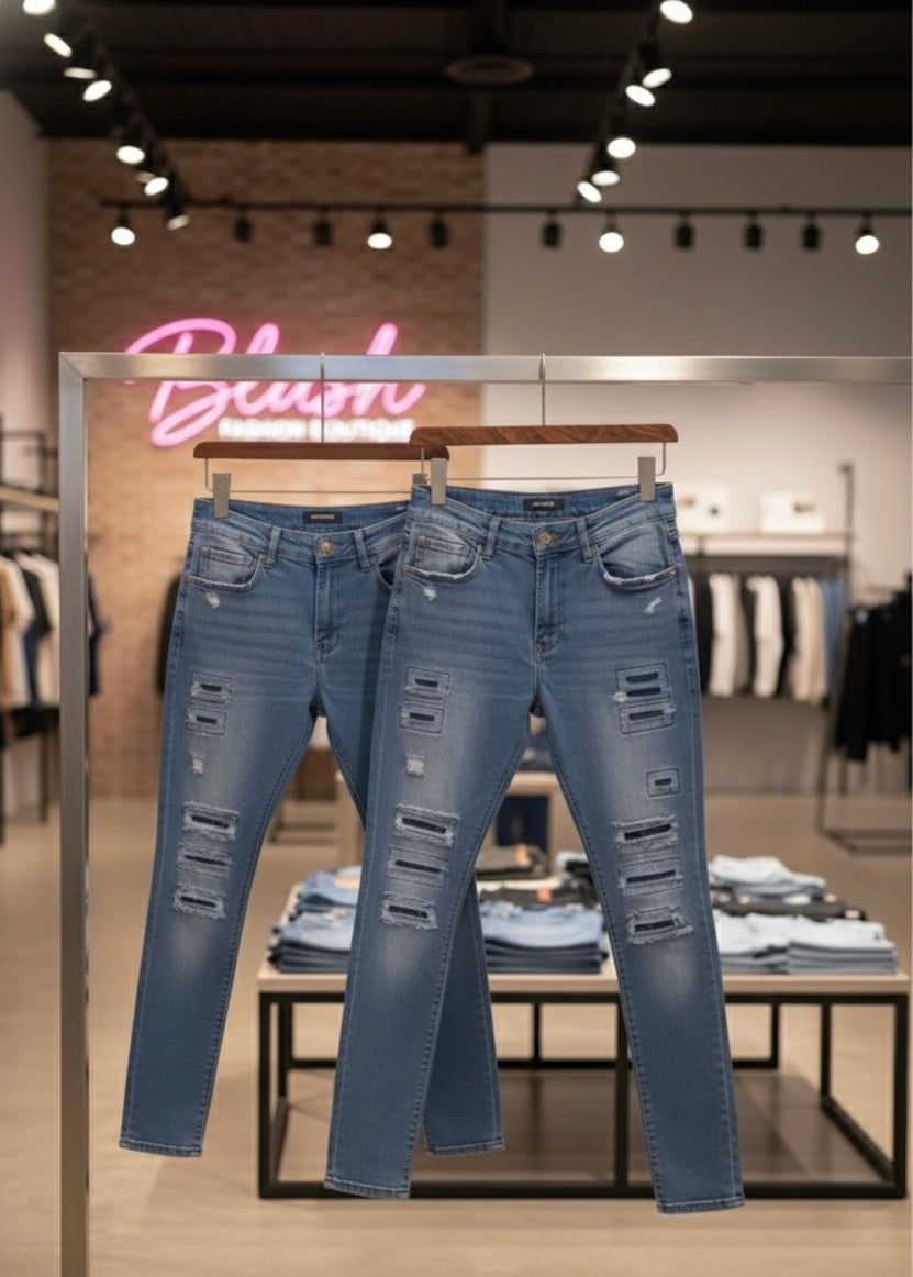 These jeans bring edge without the attitude. Designed for a sharp, modern fit, they blend rugged detail with everyday comfort. The distressed pattern gives a worn-in look that still feels polished enough to dress up or down.